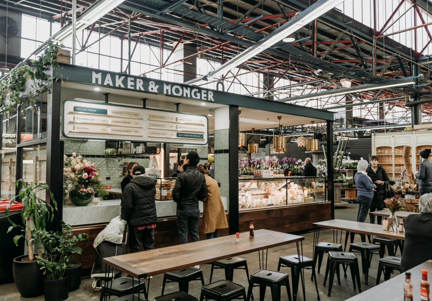 “It’s like walking up to a candy store,” cheesemonger Anthony Femia says of his new self-coined “chapel of cheese” at Prahran Market. And he’s not the only one who thinks so. Just a short time standing by Maker & Monger’s new stall and the magnetic pull of its seven-metre-long cheese cabinet is obvious. Boutique cheeses from around the world are stacked high inside, ranging from creamy gorgonzola scooped to order to huge wheels of parmigiano reggiano.